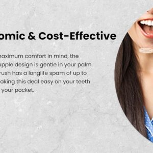 The toothbrush features soft yet durable Nylon-6 bristles that gently clean teeth while effectively removing plaque and food particles. These bristles are designed to massage the gums without causing irritation, making the brush suitable for everyday use and ideal for maintaining healthy gums and strong teeth. The carefully shaped brush head, measuring 2.5 cm in width, allows easy access to all areas of the mouth, ensuring a thorough and balanced clean.