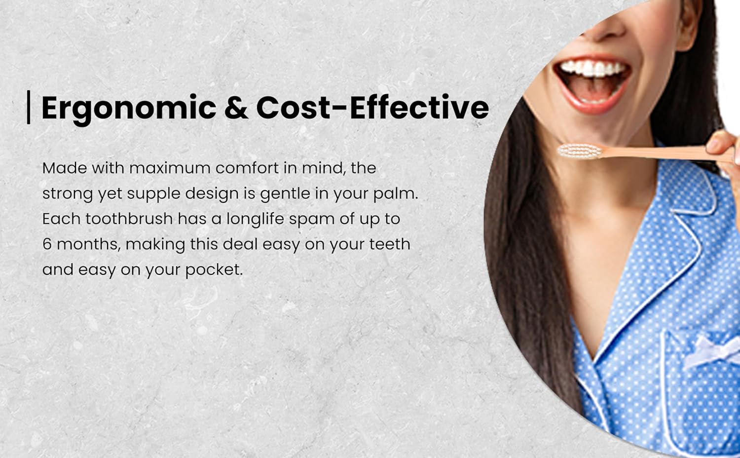 Upgrade your daily oral care routine with our premium bamboo toothbrush, designed to deliver effective cleaning while supporting a more sustainable lifestyle. Thoughtfully crafted from 100% natural bamboo, this toothbrush is an eco-conscious alternative to conventional plastic brushes. Bamboo is a renewable and biodegradable resource, making it an environmentally responsible choice that helps reduce plastic waste without compromising on performance or comfort.