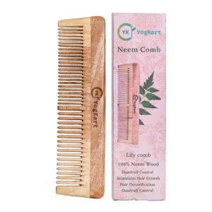Kacchi Neem Wooden Lily and Shampoo Comb – Neem & Sesame Oil For Multi-Actions – Detangling, Frizz Control & Shine,Suited For All Hair Types (Dual Tooth) Neem comb