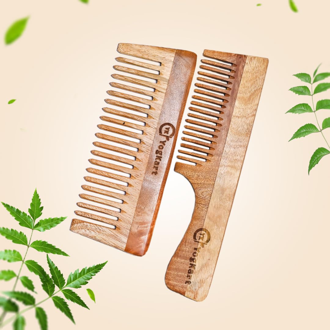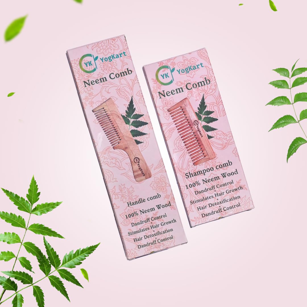 YOGKART Kacchi Neem Wooden Comb Handle & Neem–Sesame Oil Shampoo – Complete Natural Hair Care Solution