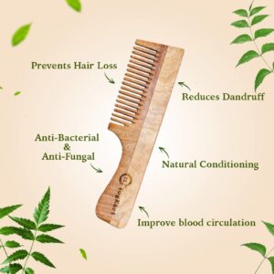 YOGKART Kacchi Neem Wooden Comb – Neem & Sesame Oil For Multi-Actions – Detangling, Frizz Control & Shine,Suited For All Hair Types (Dual Tooth) Neem comb
