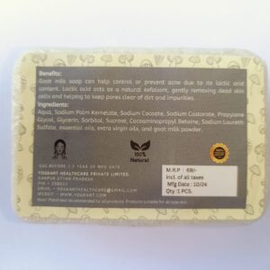 Suitable for both face and body, this soap is made with a natural, chemical-free formula, free from harsh sulfates, parabens, and artificial additives. Safe for daily use, our Goat Milk Soap supports clear, calm, and radiant skin, giving you a naturally healthy glow you can feel confident about every day.