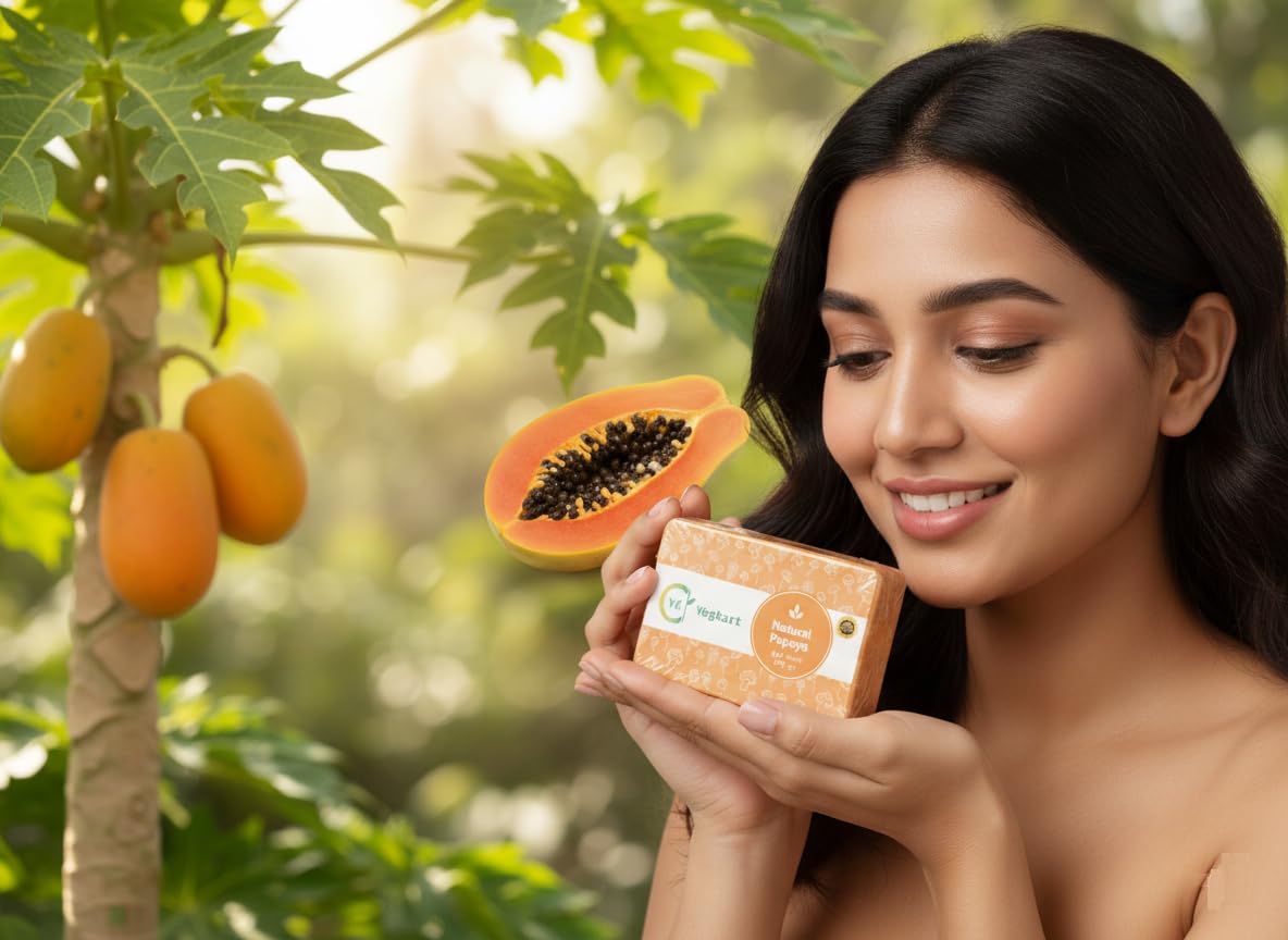 YogKart Natural Papaya Soap – Brightening & Pigmentation Care (100 g)